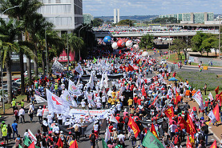 Unidade, Unidade! Presentes todas as feições do povo brasileiro. Que trabalha, sofre e luta. Descemos em marcha desde o estádio Mané Garrincha até o gramado da esplanada dos Ministérios, de frente para Congresso Federal dos patrões da burguesia.