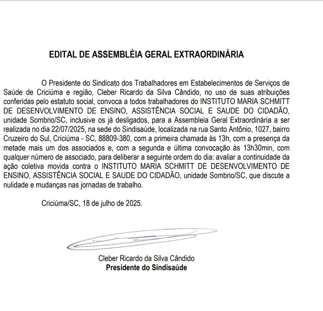 Assembleia geral extraordinária trabalhadores do IMAS Sombrio