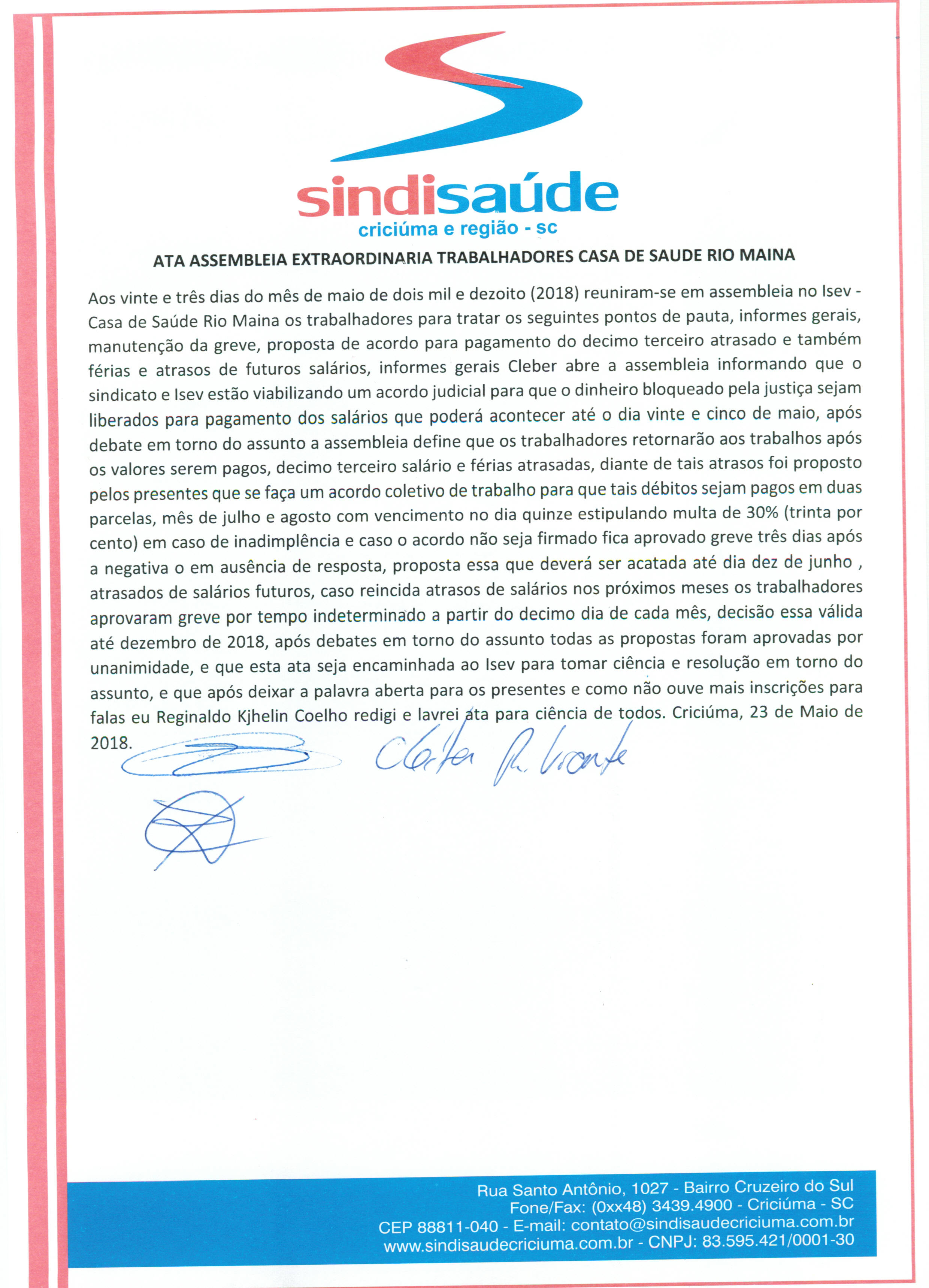Ata assembléia geral extraordinária da 23 de Maio de 2018 - ISEV Casa de Saúde Rio Maina