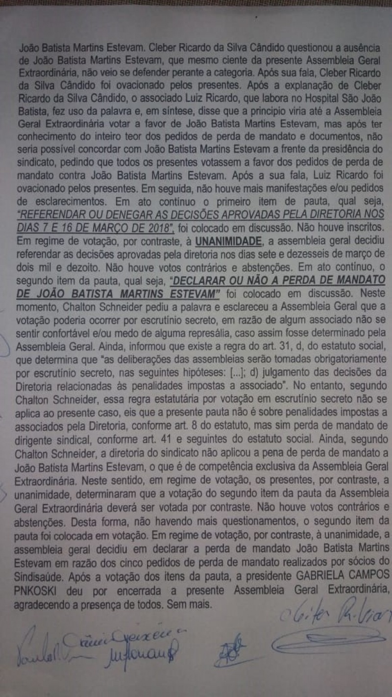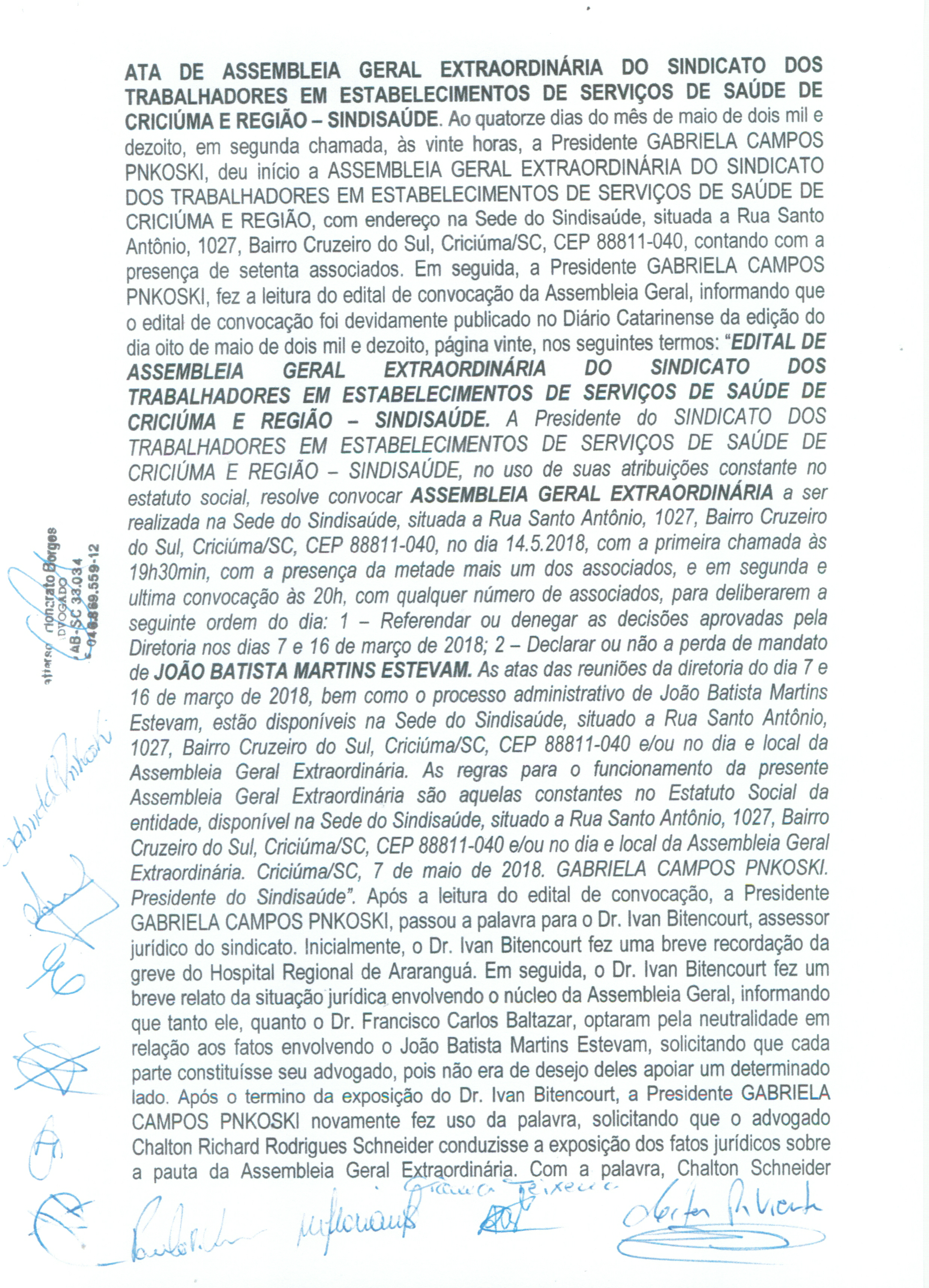 ATA ASSEMBLEIA GERAL EXTRAORDINARIA DO DIA 14 DE MAIO DE 2018