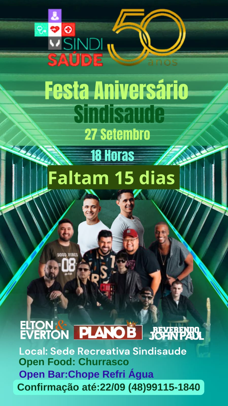 Faltam 15 dias para a comemoração das bodas de ouro do Sindicato, no sábado, 27 de setembro, a partir das 18h, na sede recreativa. Não perca. Reserve o seu ingresso.