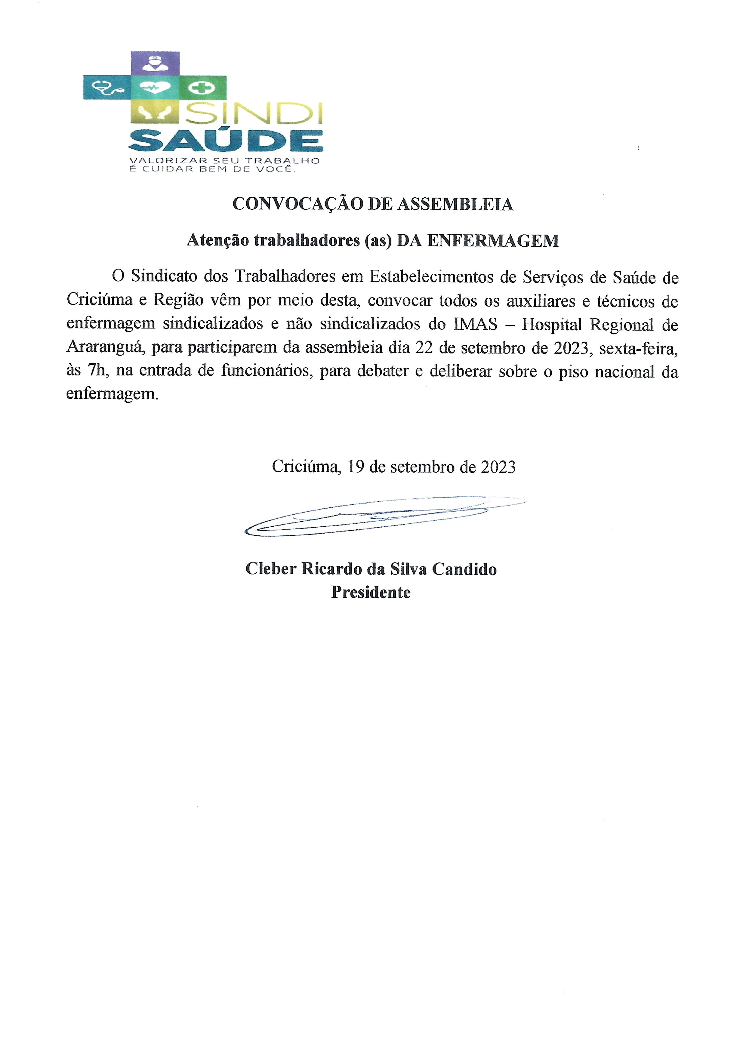 EDITAL ASSEMBLEIA SOBRE O PISO NACIONAL DA ENFERMAGEM IMAS - HRA