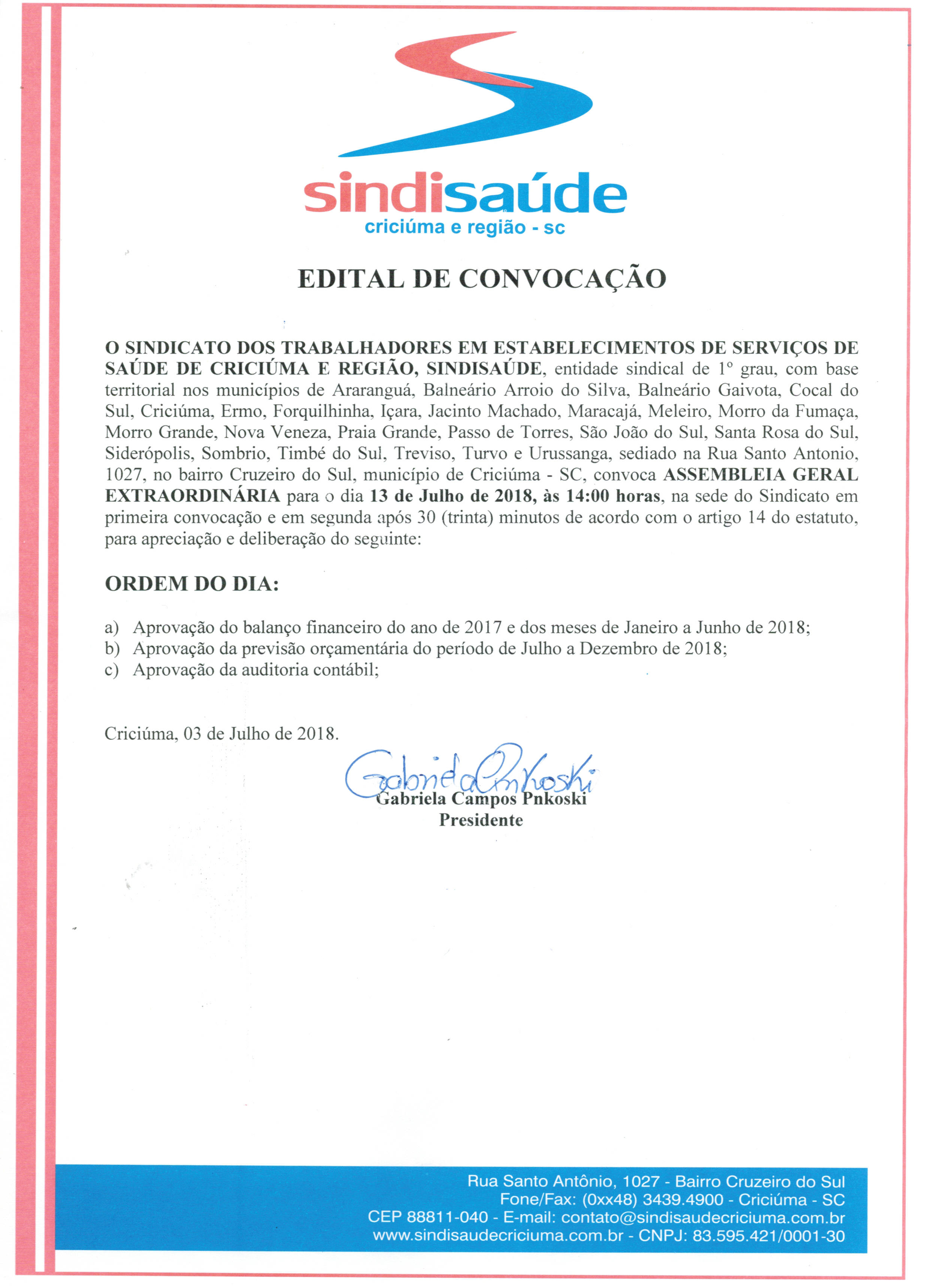 EDITAL DE CONVOCAÇÃO DE ASSEMBLEIA GERAL EXTRAORDINÁRIA