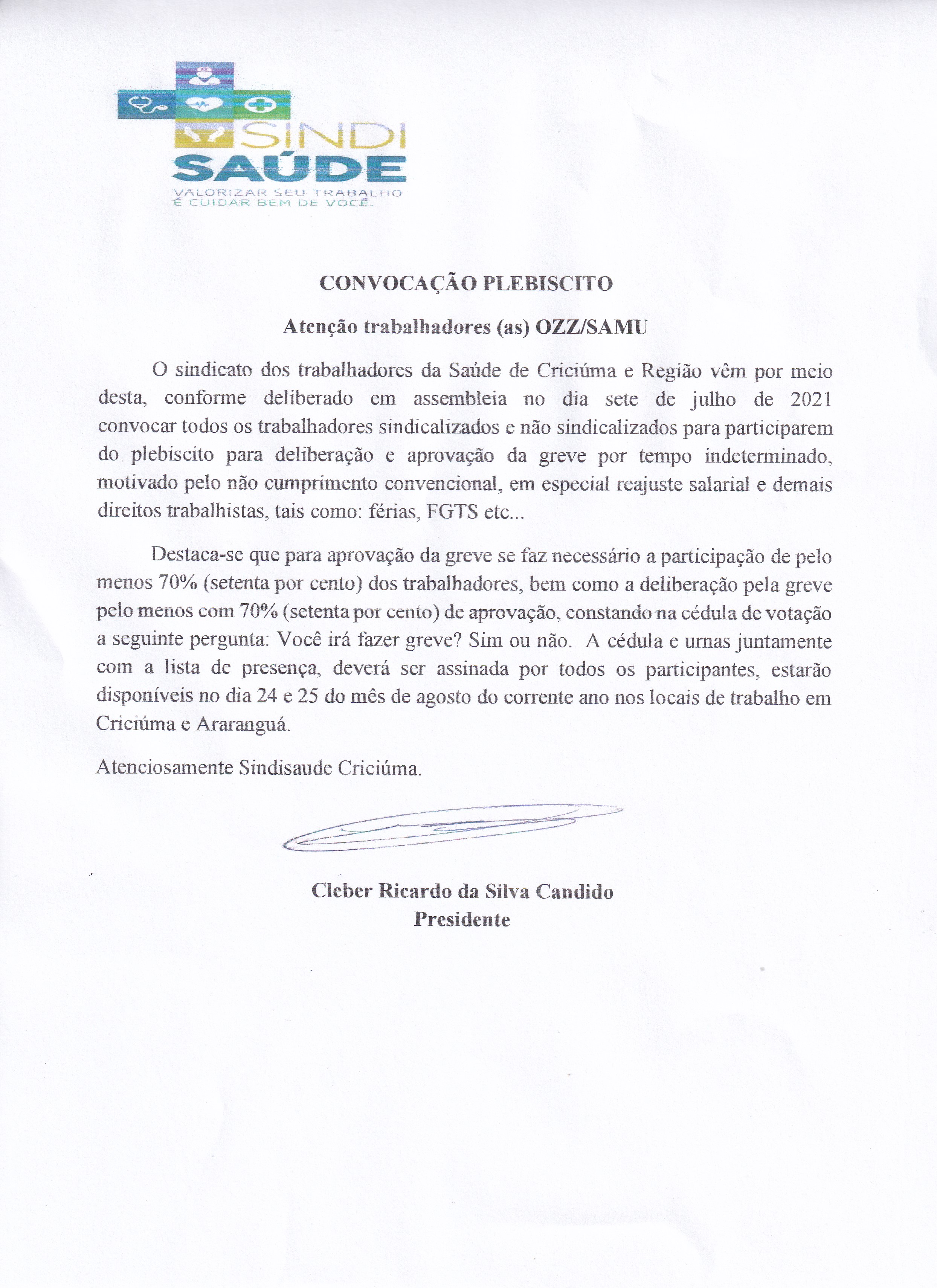 EDITAL DE CONVOCAÇÃO PLEBISCITO OZZ - SAMU