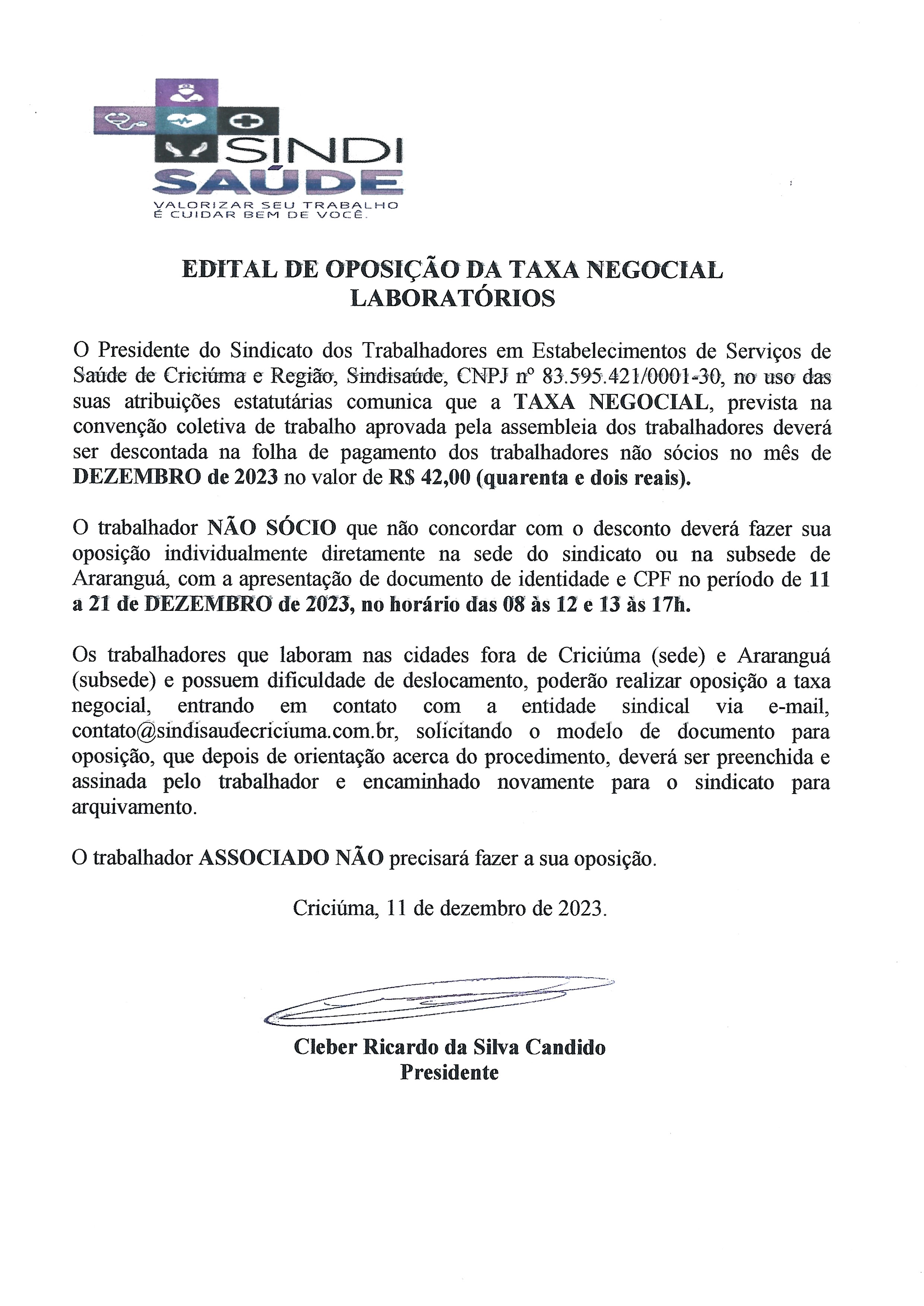 EDITAL OPOSIÇÃO TAXA NEGOCIAL DEZEMBRO DE 2023 - LABORATÓRIOS