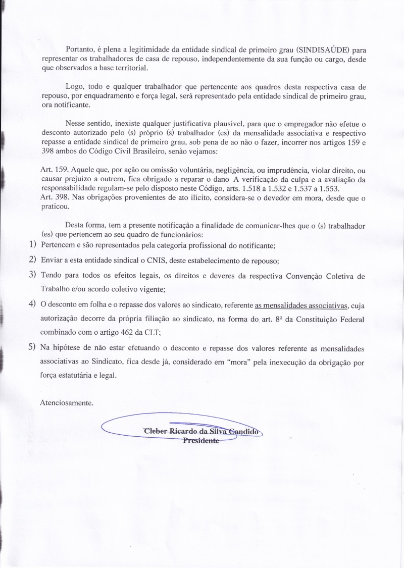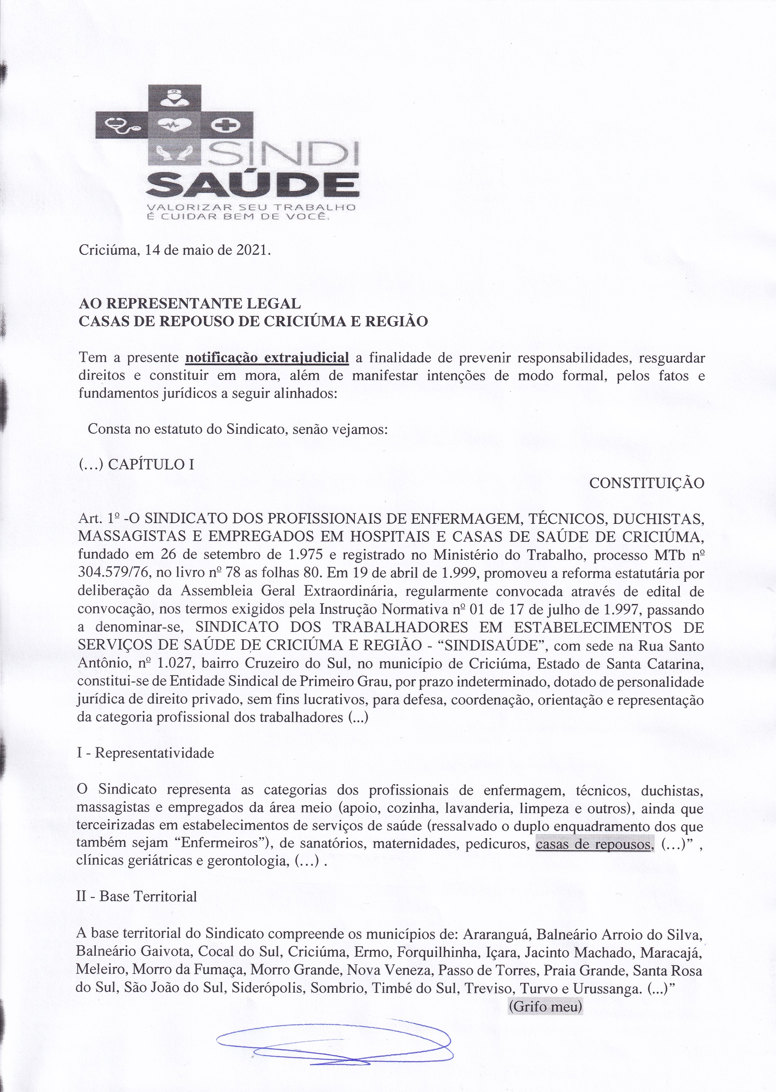 Notificação extrajudicial encaminhada as Casas de Repouso