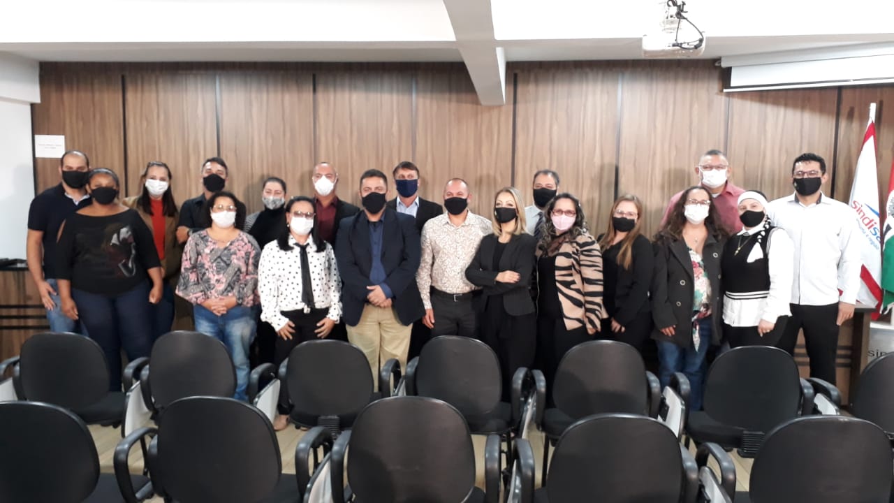 A nova diretoria do do Sindicato dos Trabalhadores em Estabelecimentos de Saúde de Criciúma e Região (Sindisaúde), tomou posse na noite de sexta-feira, 07 de maio, no Auditório da sede do Sindicato em Criciúma. Um total de 23 membros fizeram o juramento para um mandato até 2026. No seu retorno ao comando da entidade, após dois mandatos, de 2009 a 2013 e de 2013 a 2017, o presidente empossado reafirmou o compromisso em manter as lutas pelo reconhecimento da importância da categoria e, pela pressão para a aprovação no Senado Federal do projeto de redução da jornada da enfermagem para 30 horas semanais; bem como a ampliação de todos os serviços de assessorias aos trabalhadores. “Destacando que a bandeira mais importante para nós será sempre a ampliação de mais benefícios na Convenção Coletiva que hoje, mesmo sendo a melhor do estado, ainda é pouco e vamos trabalhar muito para avançarmos em outros direitos”, enfatizou o presidente. São cerca de 8 mil trabalhadores na base com abrangência em 25 municípios. A funcionária do Hospital Materno Infantil Santa Catarina, Sílvia Regina Fernandes, integra pela primeira vez a direção do Sindicato como diretora de patrimônio e assuntos jurídicos. Sócia há mais de oito anos, ela acredita nas lutas e disse estar no “sangue” está vontade de participar, por ter parentes ligados ao movimento sindical: “Estou aqui para representar os meus colegas do hospital e toda categoria. Muitos tem medo do Sindicato pois não conhecem o trabalho. Eu não tenho medo e vou ajudar as pessoas a mudarem este pensamento e entenderem a importância do Sindicato como a nossa voz junto aos patrões”, explica.