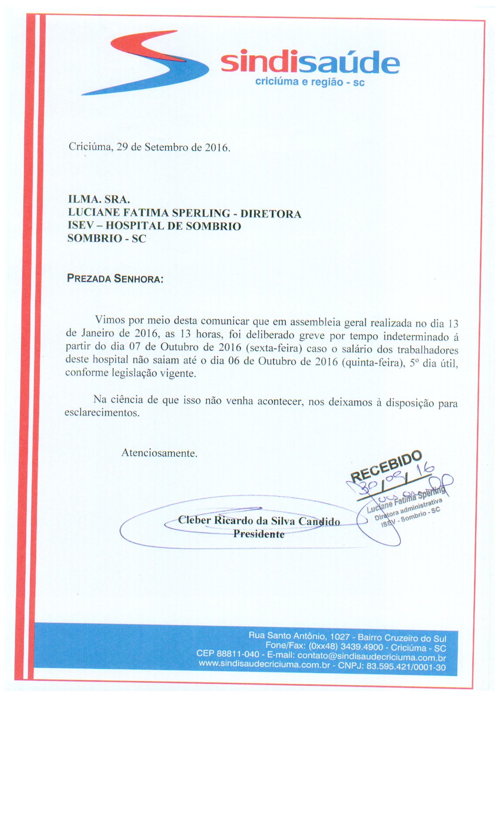 Ofício atraso de pagamento de salários ISEV - SOMBRIO