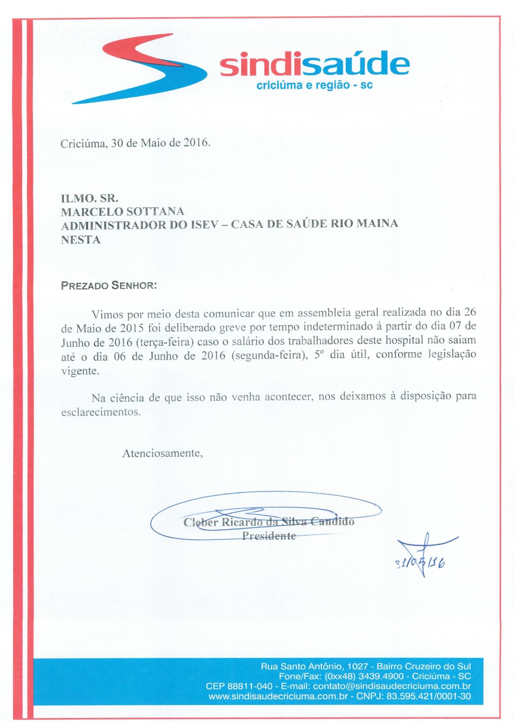OFÍCIO ATRASO PAGAMENTO DE SALÁRIO ISEV/CSRMAINA