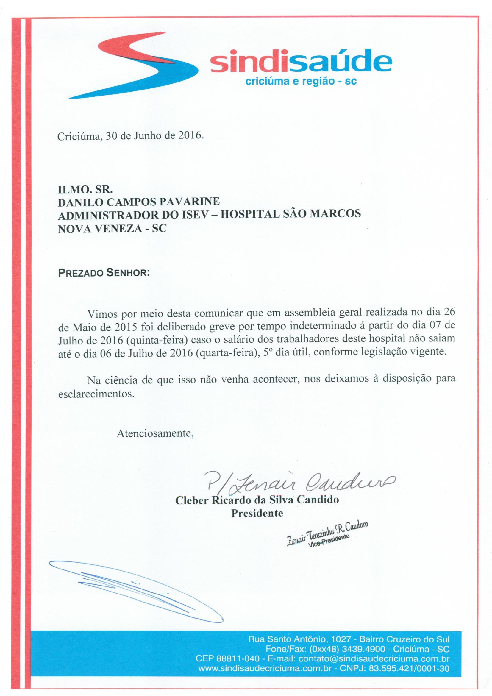 OFÍCIO ATRASO PAGAMENTO DE SALÁRIO ISEV/H.S.MARCOS