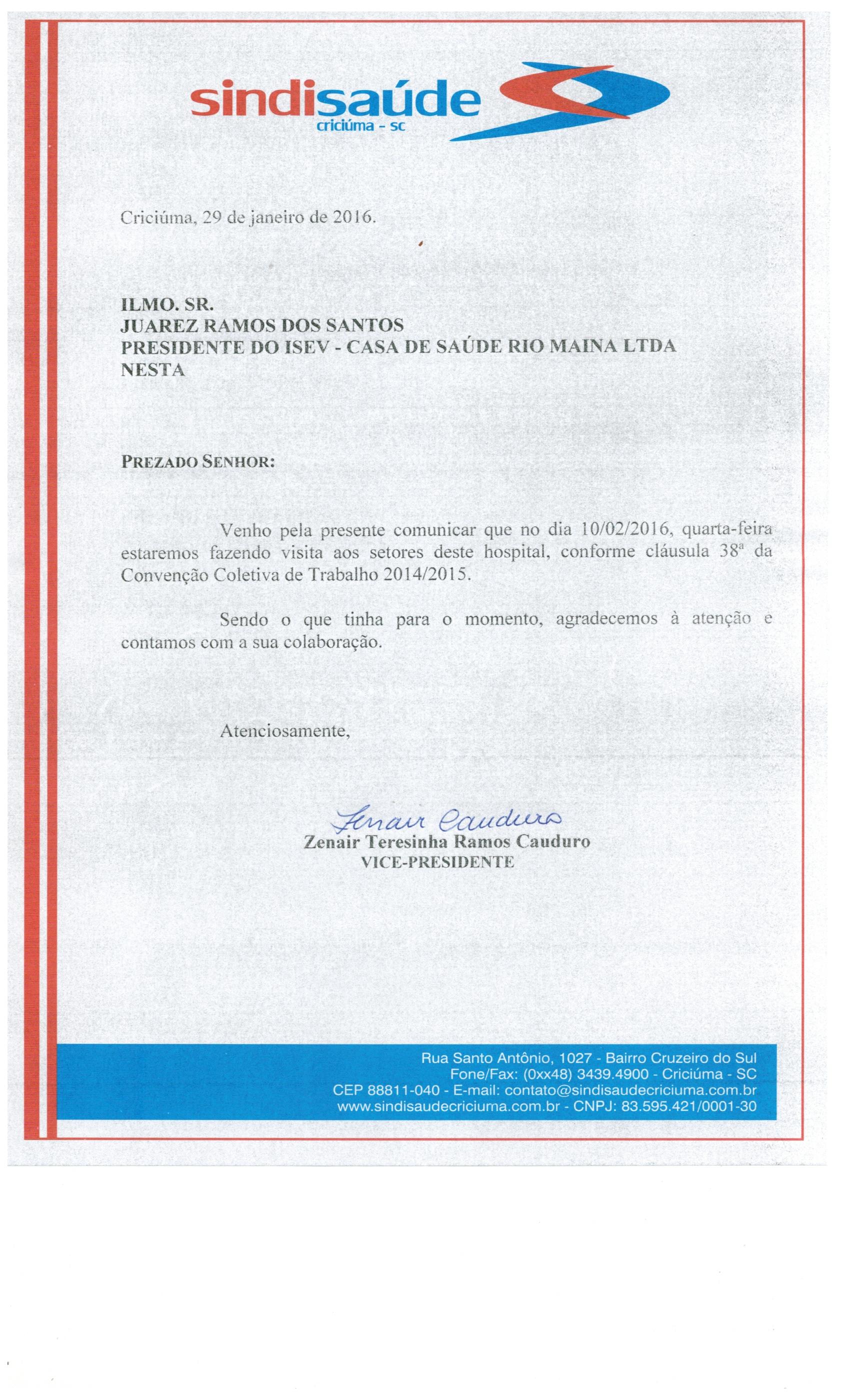 Oficio Comunicando a visita aos setores o Hospital Rio Maina