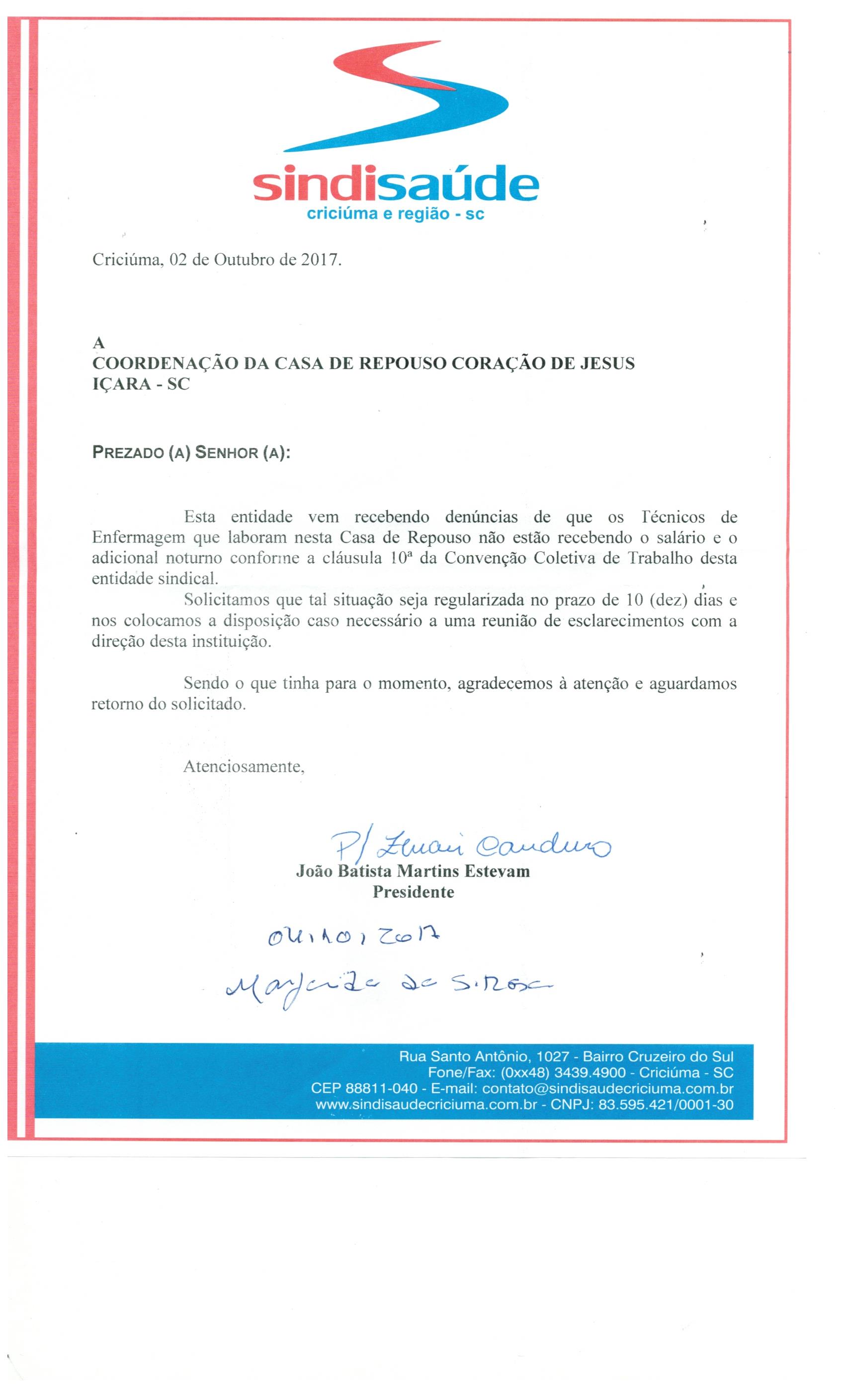 OFÍCIO ENCAMINHADO A CASA DE REPOUSO CORAÇÃO DE JESUS