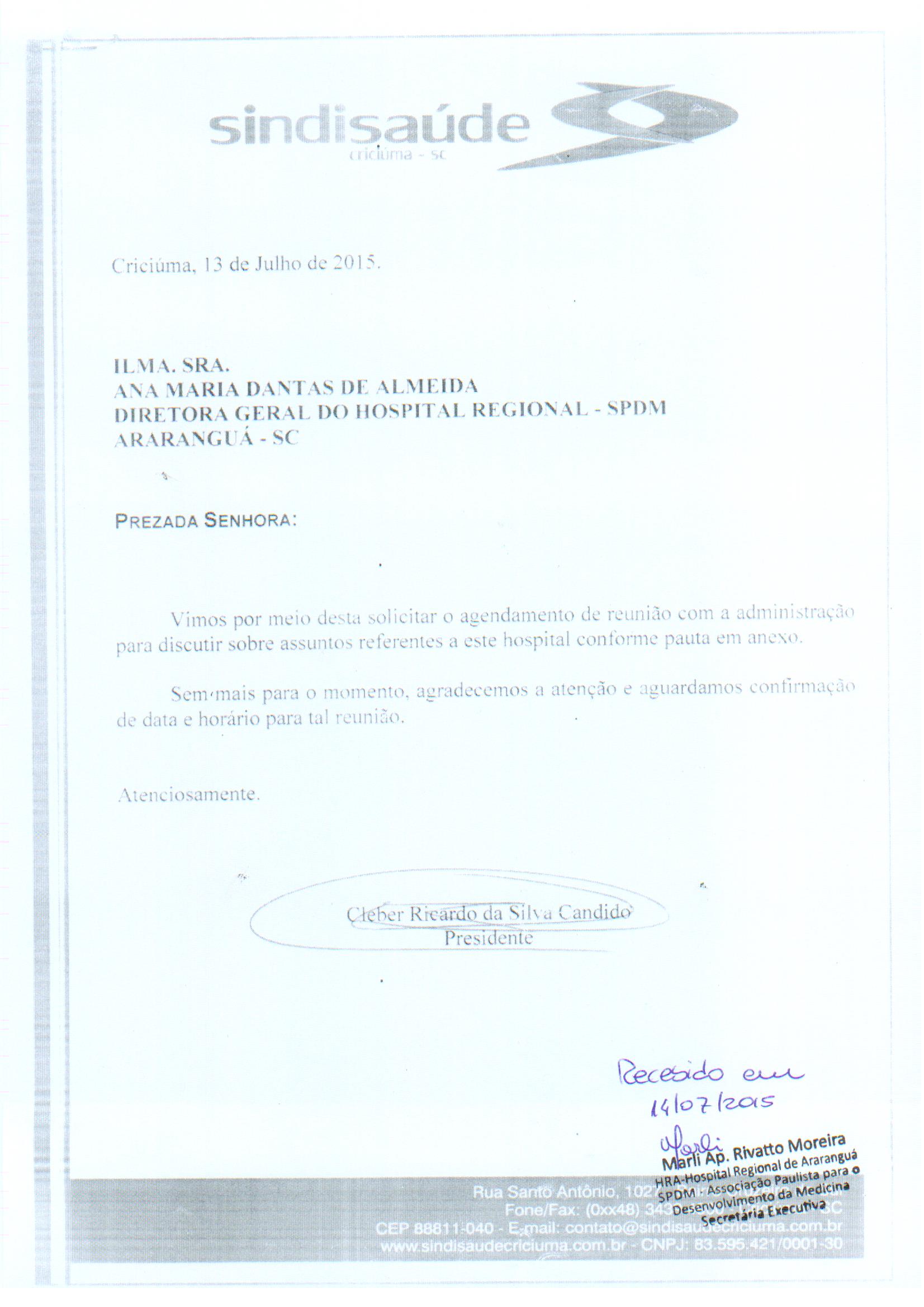 Oficio encaminhado a SPDM/HRA