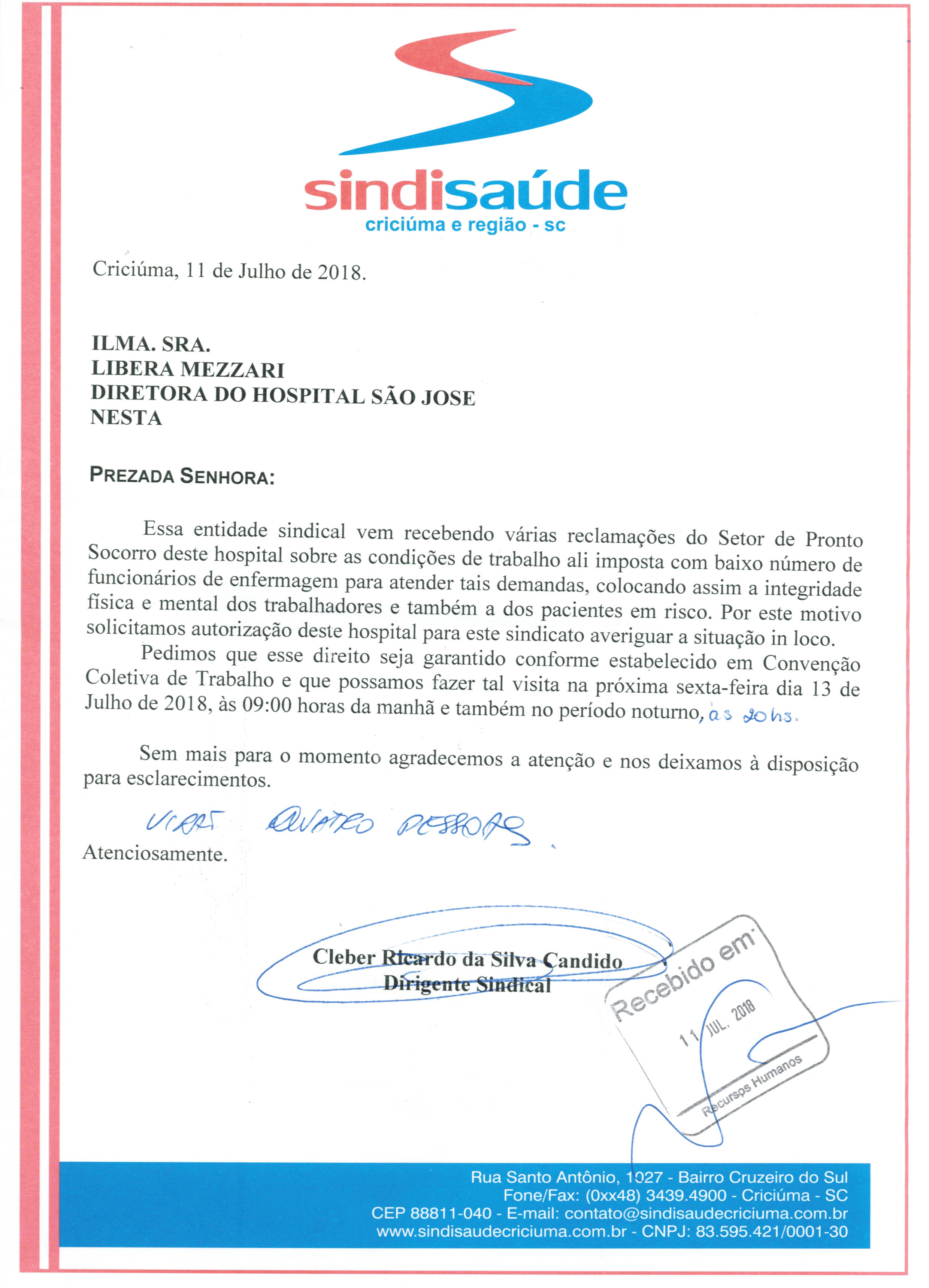 OFÍCIO ENCAMINHADO AO HOSPITAL SÃO JOSÉ