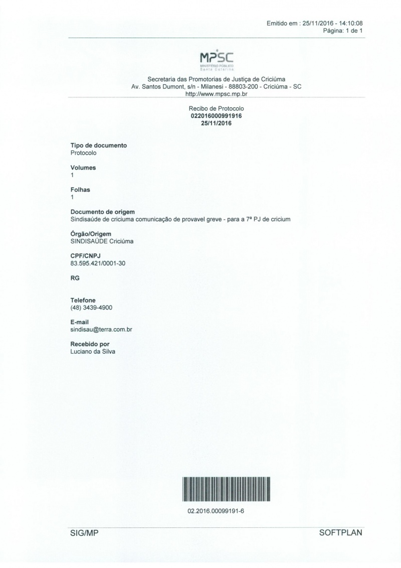 OFÍCIO ENCAMINHADO AO MINISTÉRIO PÚBLICO ESTADUAL SOBRE A GREVE DA CATEGORIA