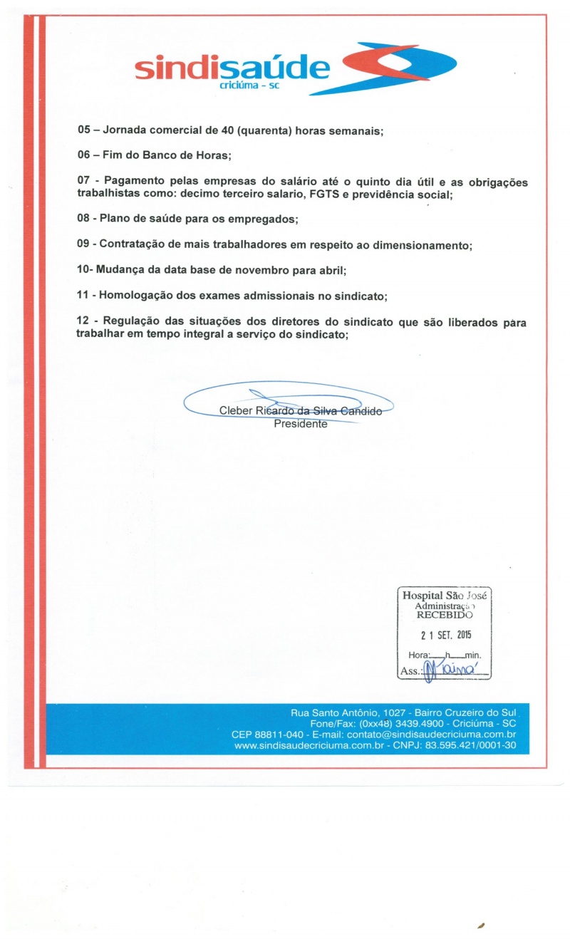 OFICIO PAUTA DE REIVINDICAÇÃO CCT 2015/2016 ENCAMINHADO AO SINESSUL