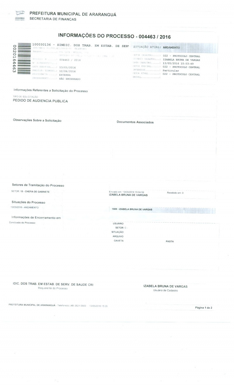 OFÍCIO PEDIDO DE AUDIÊNCIA PÚBLICA ARARANGUÁ