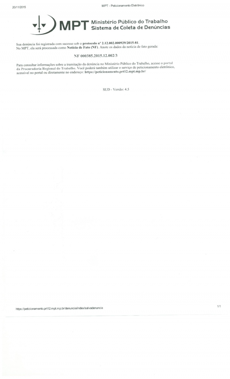 Ofício protocolado no Ministério Público do Trabalho sobre greve