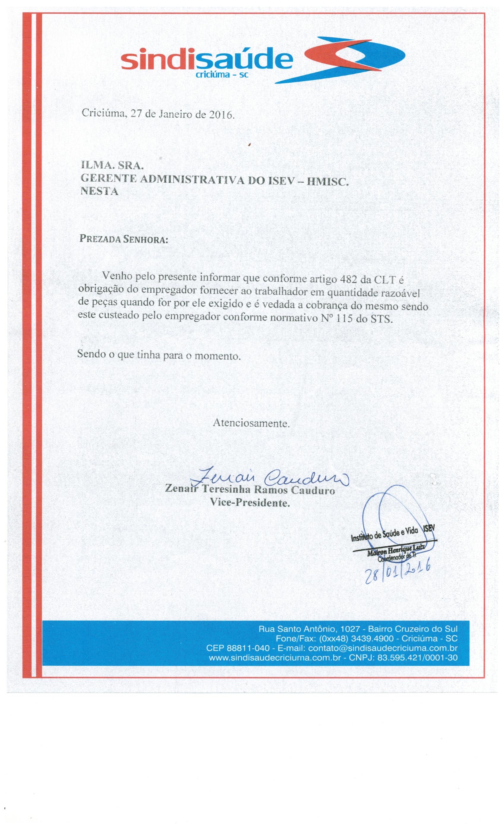 Oficio Referente a Uniformes Hospital do ISEV -HMISC