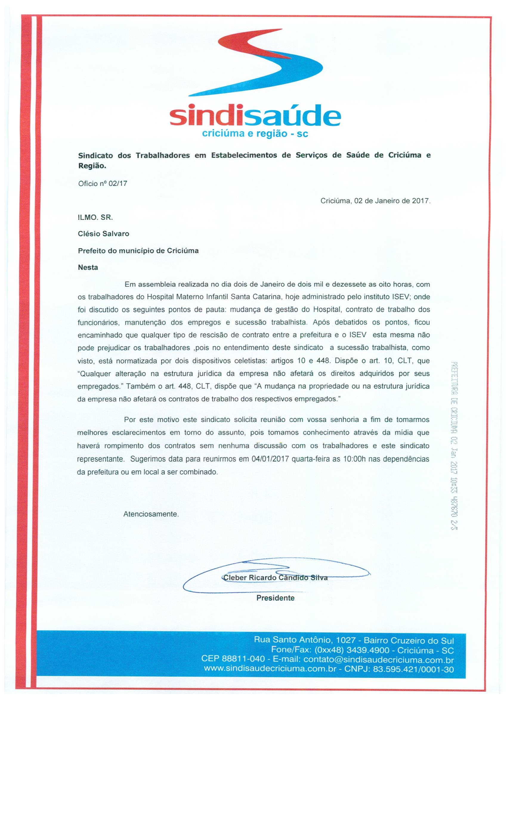 Oficio Rescisão de Contrato entre Prefeitura e ISEV -Clesio Salvaro