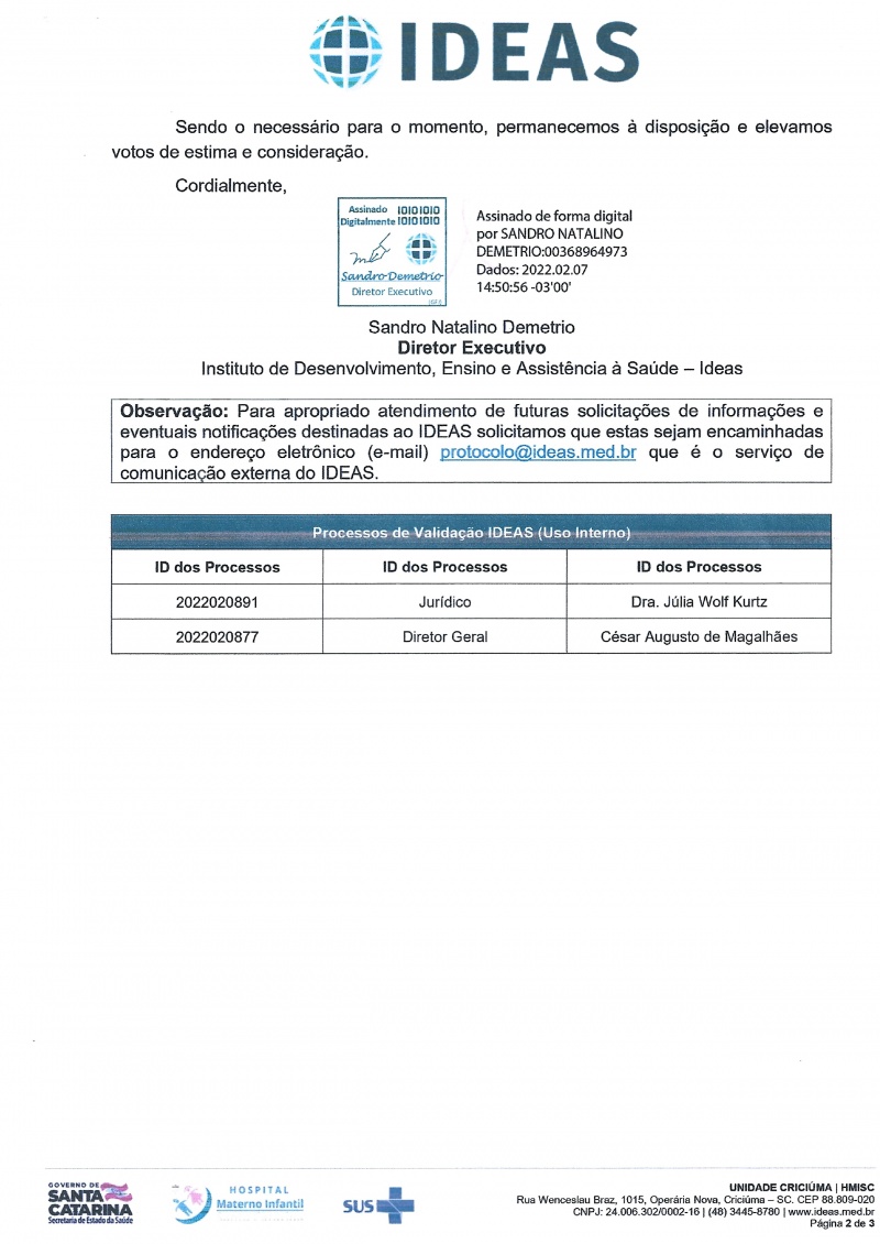 Ofício resposta Ideas - HMISC sobre cancelamento de férias dos trabalhadores