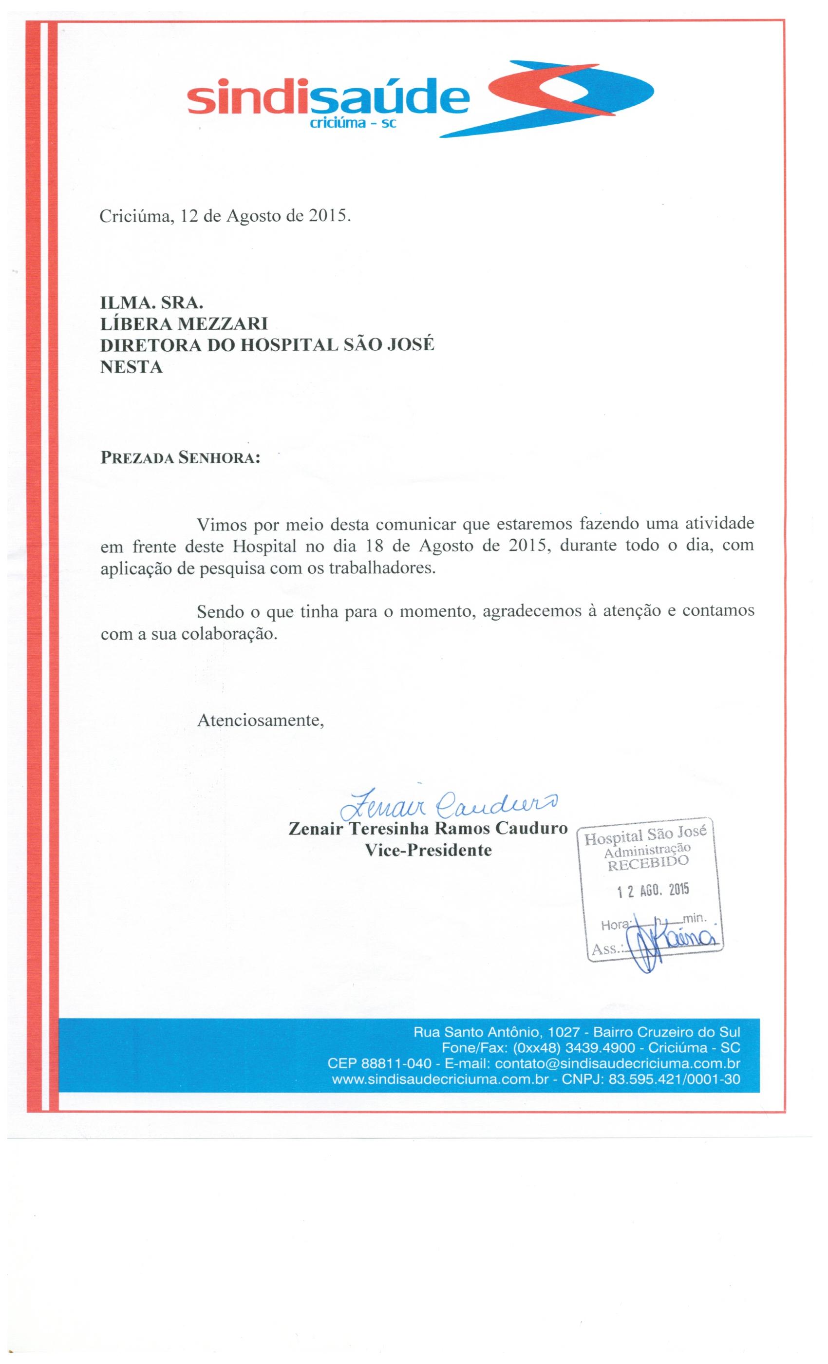Ofício sobre atividade Hosp. São José