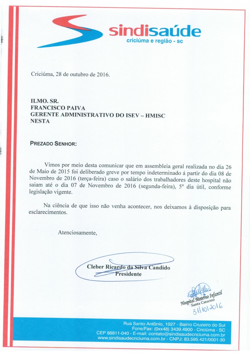 Ofícios atraso pagamento de salários HSJ, SPDM HRA E SAMU, ISEV HMISC, CSRM, Nova Veneza e Sombrio