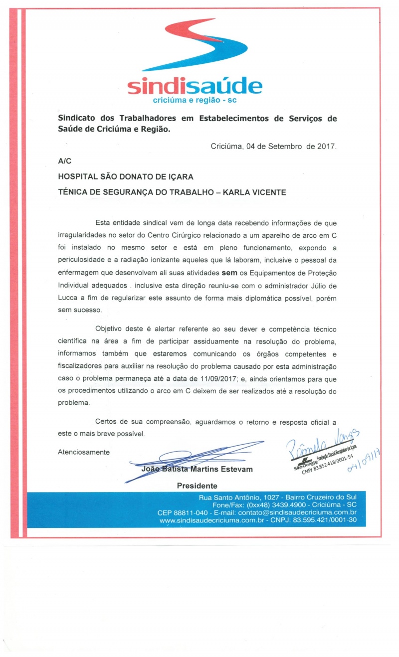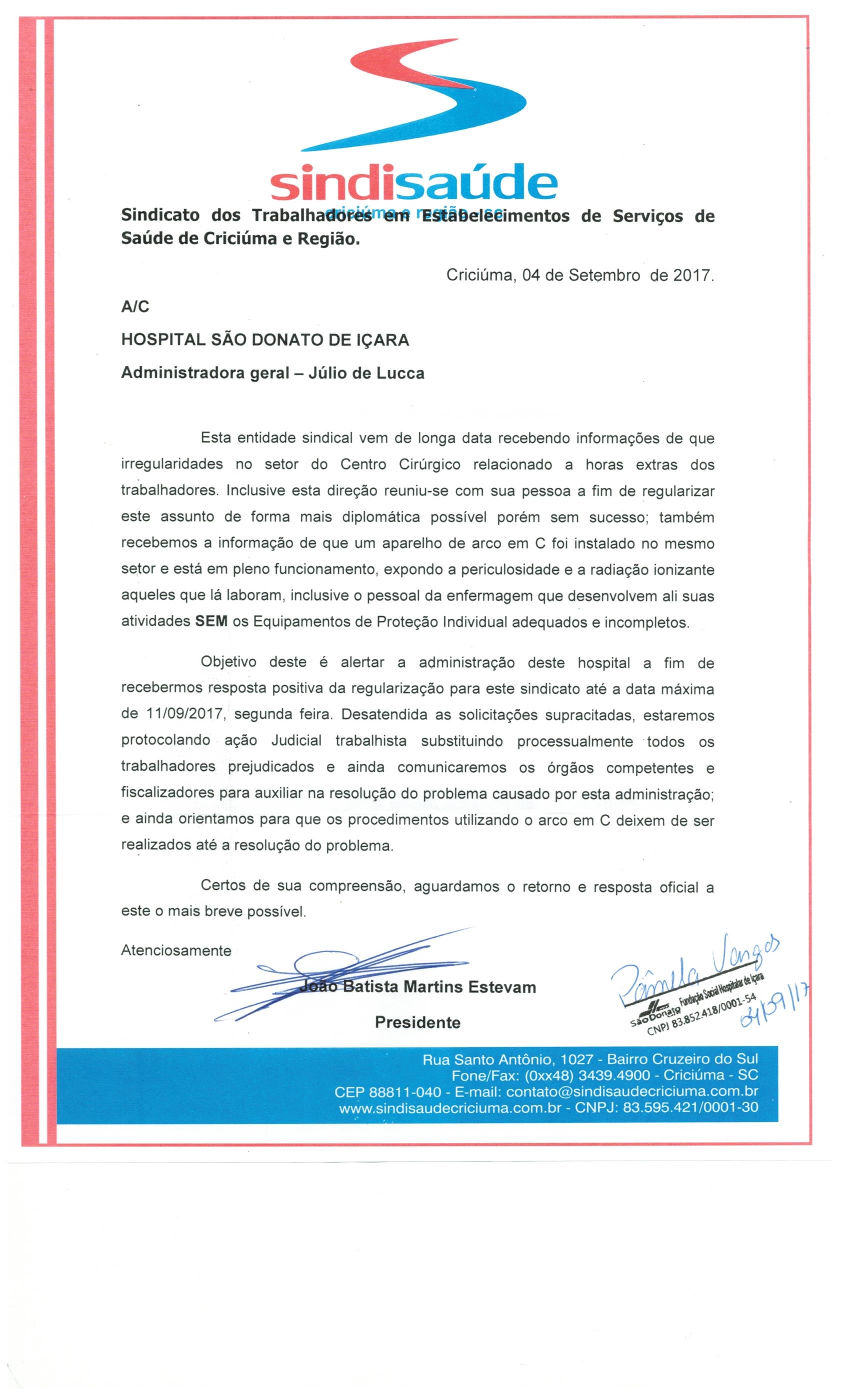 OFÍCIOS ENCAMINHADOS AO HOSPITAL SÃO DONATO DE IÇARA