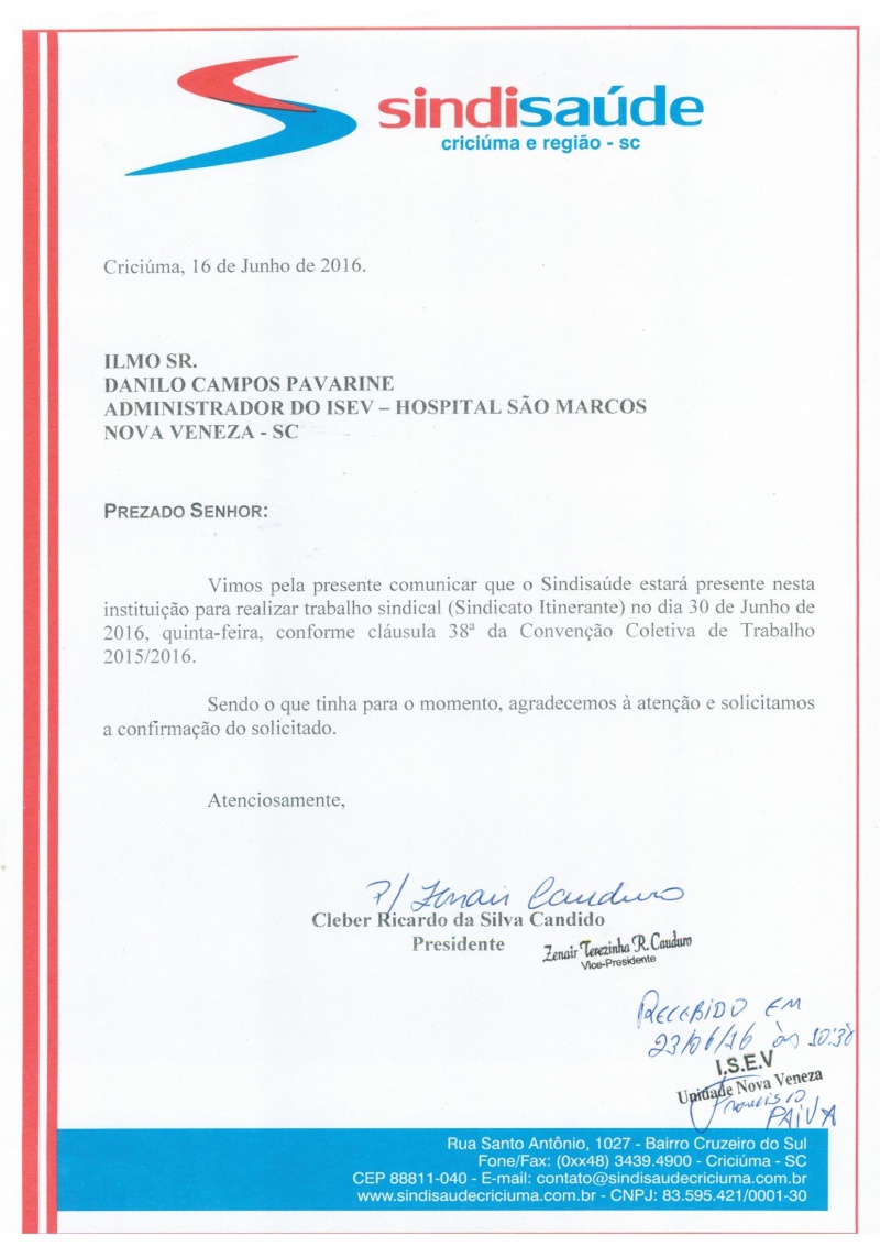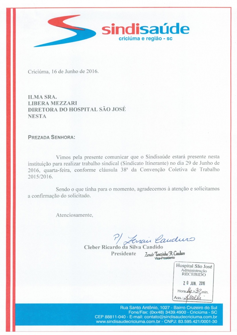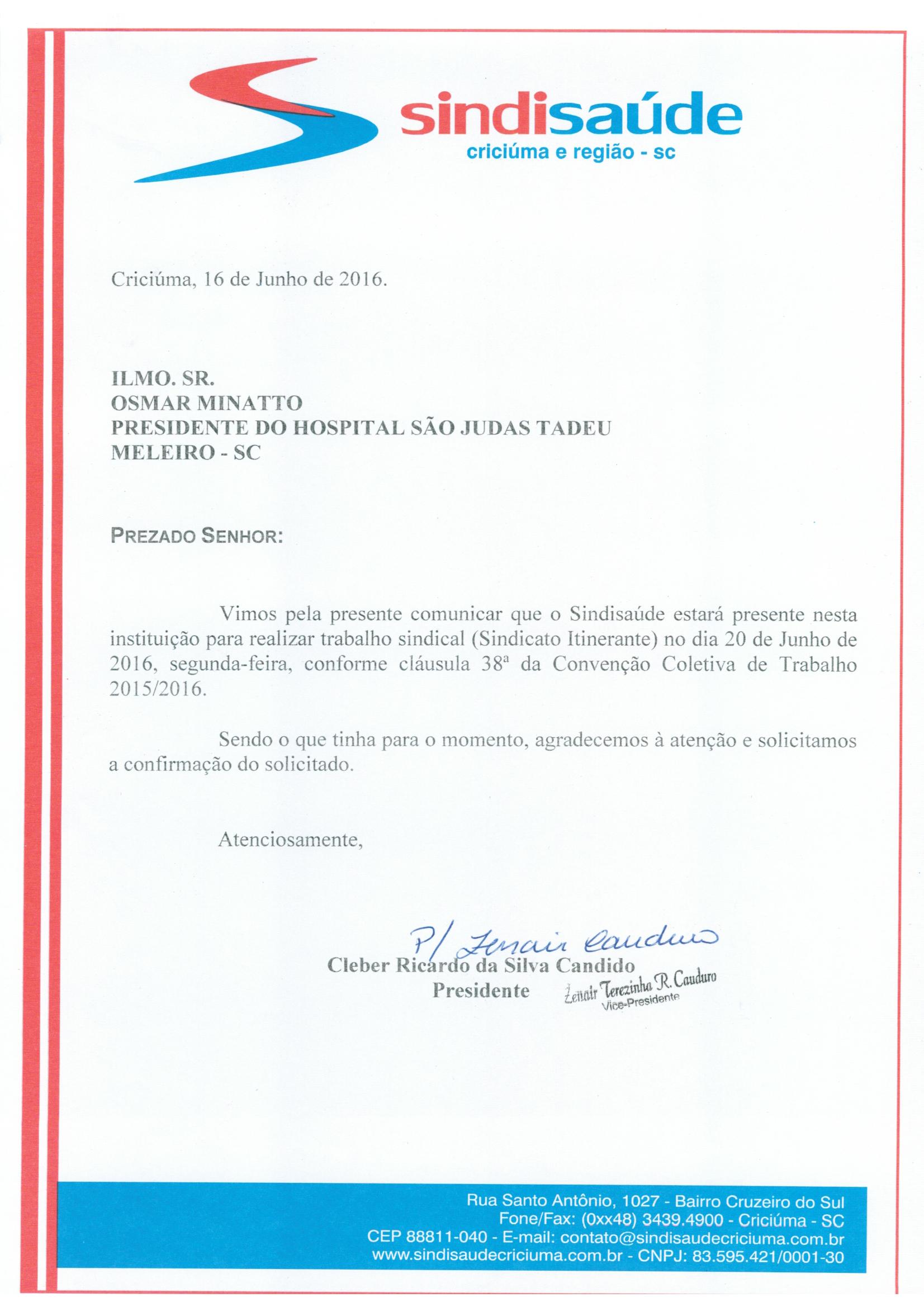 OFÍCIOS SINDICATO ITINERANTE JUNHO/2016