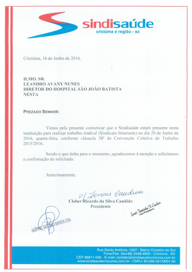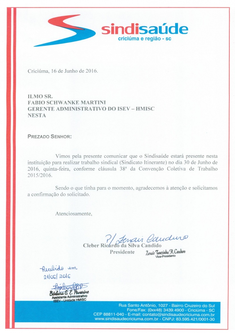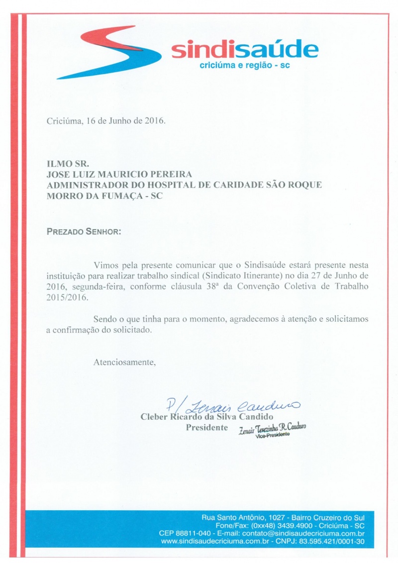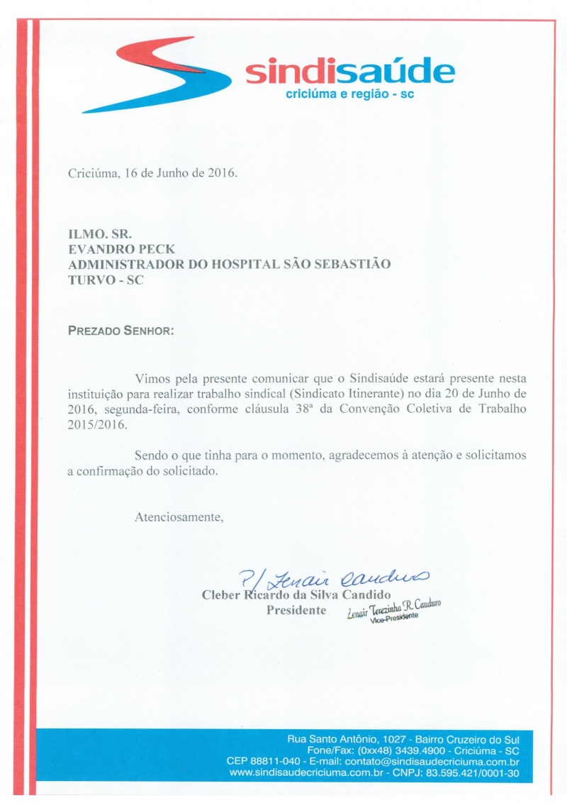 OFÍCIOS SINDICATO ITINERANTE JUNHO/2016